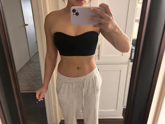 This strapless bra offers superior support with its non-slip silicone edges and wireless design.