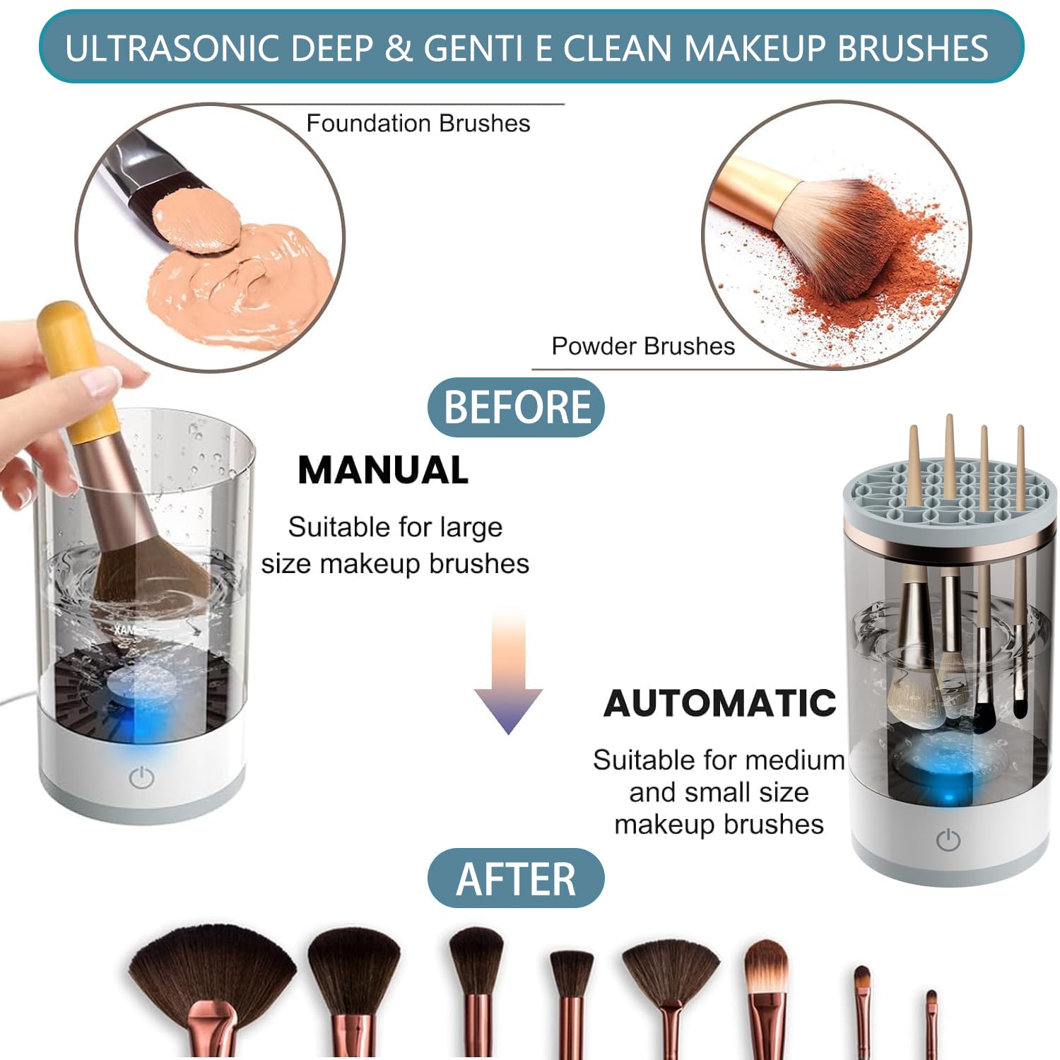 - High Power Deep Clean: Our Brushy Makeup Cleaner Utilizes State-Of-The-Art Technology To Ensure A Thorough And Gentle Cleansing Of Your Makeup Brushes. The Powerful Yet Gentle Motor Rotates And Cleans Each Bristle, Removing Makeup Residue, Oil, And Impurities.