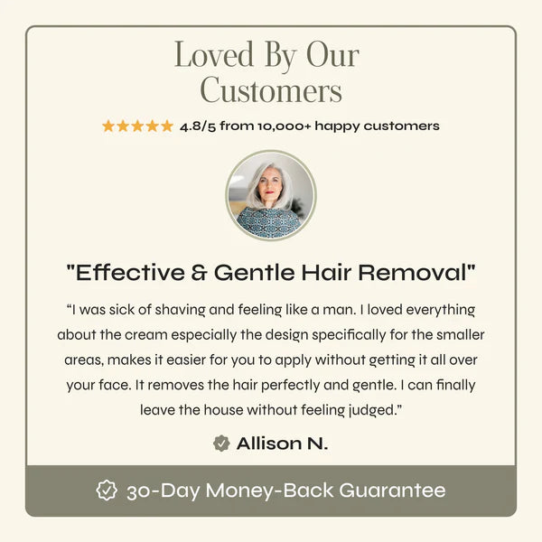 Ahlwo's Painless Hair Removal Cream Gently Dissolves Even the Thickest, Most Stubborn Hormonal Facial Hair - Leaving Women 55+ Hair-Free for Days. Without Ingrowns, stubbles or anyone noticing.