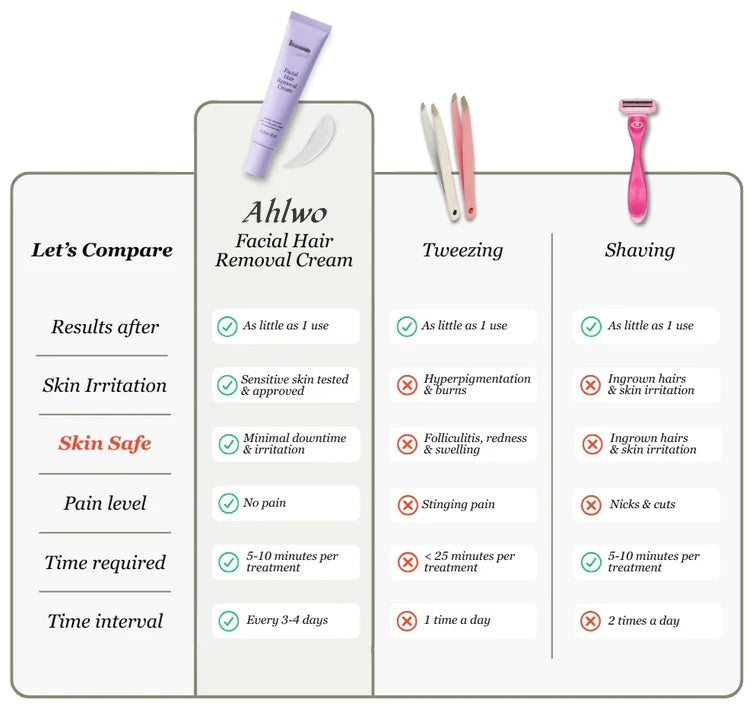 Most users do not experience itching or burning after using Ahlwo’s Facial Hair Removal Cream, thanks to its gentle formula with soothing ingredients like aloe vera and bisabolol. However, mild sensitivity such as redness or tingling can occasionally occur, especially on sensitive skin or if left on too long.